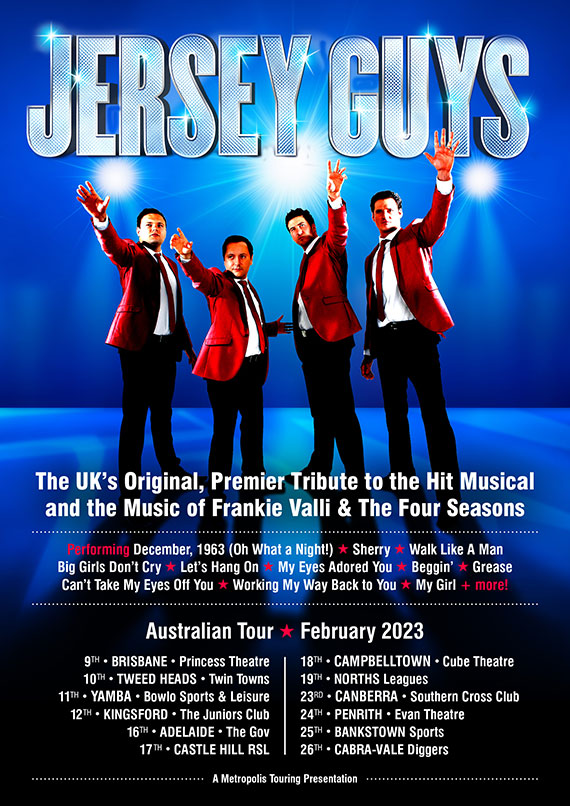Featuring Stars of the West End Smash Hit Musical, with their slick moves and tight four-part harmonies, the Jersey Guys deliver a knock-out, spectacular show that always gets audiences up on their feet and begging for more.