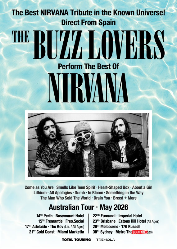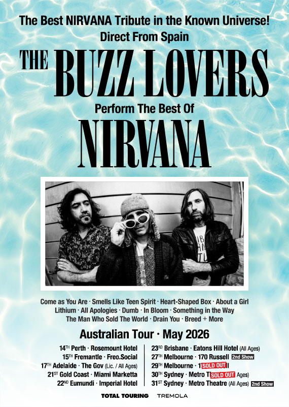 On this upcoming tour of Australia they will perform the Best of Nirvana including – Smells Like Teen Spirit, Come as You Are, Heart Shaped Box, Lithium, About a Girl, All Apologies, Bloom, Dumb + many more