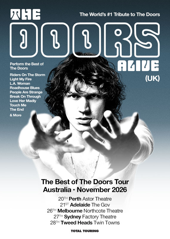 Direct from the UK, THE DOORS ALIVE are “The best Doors tribute band that I’ve seen… Sometimes they sound more like The Doors than The Doors” (Doug Cameron – The Doors Assistant Road Manager)